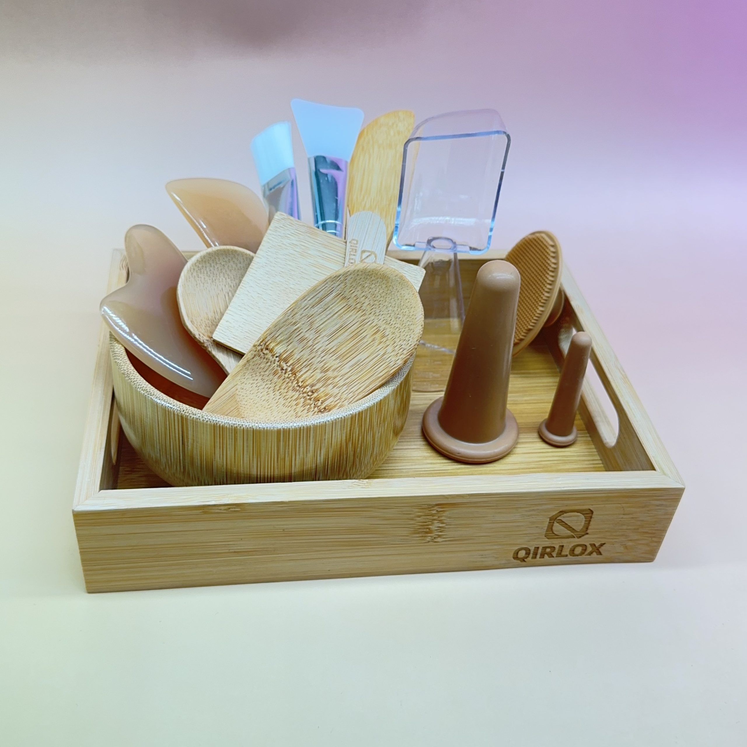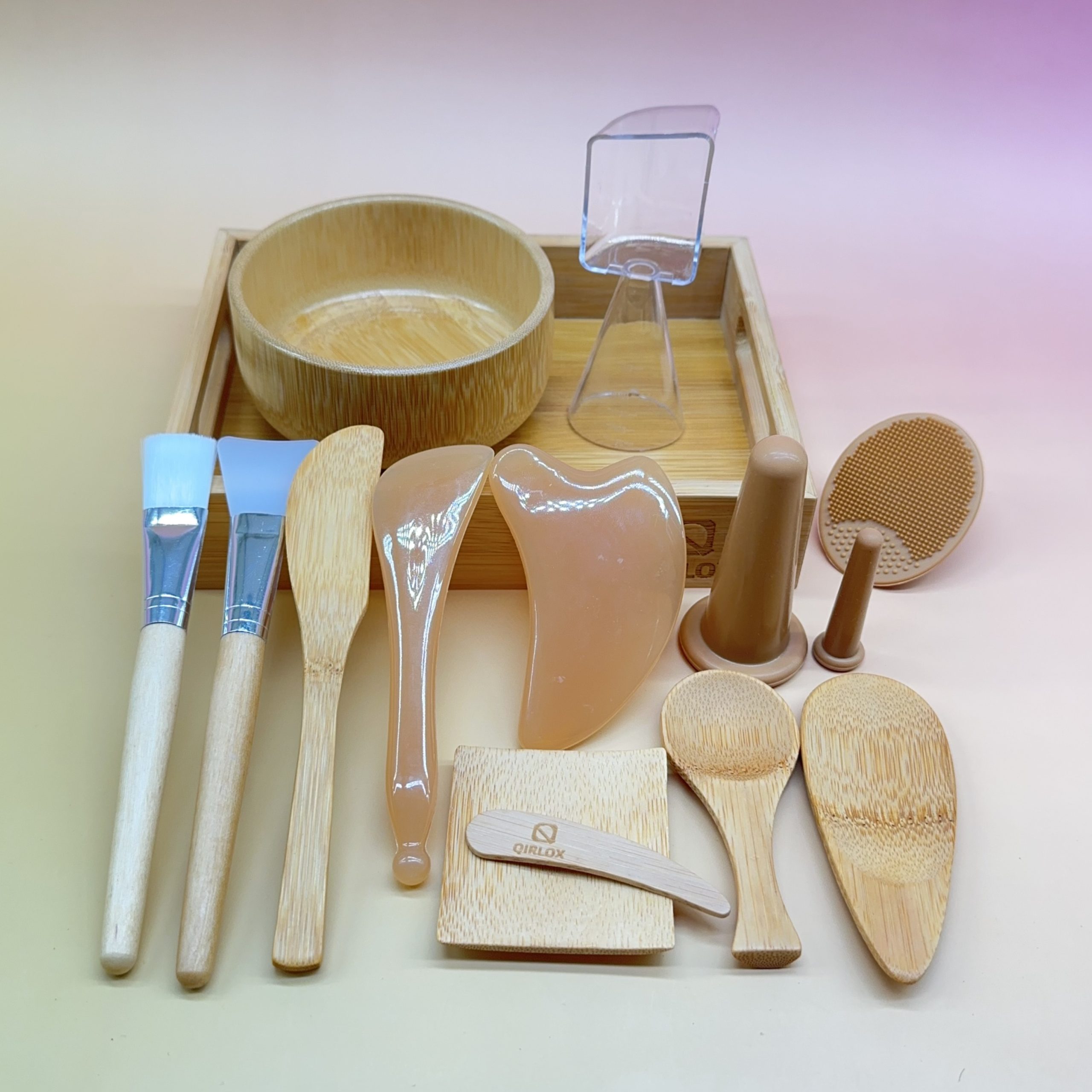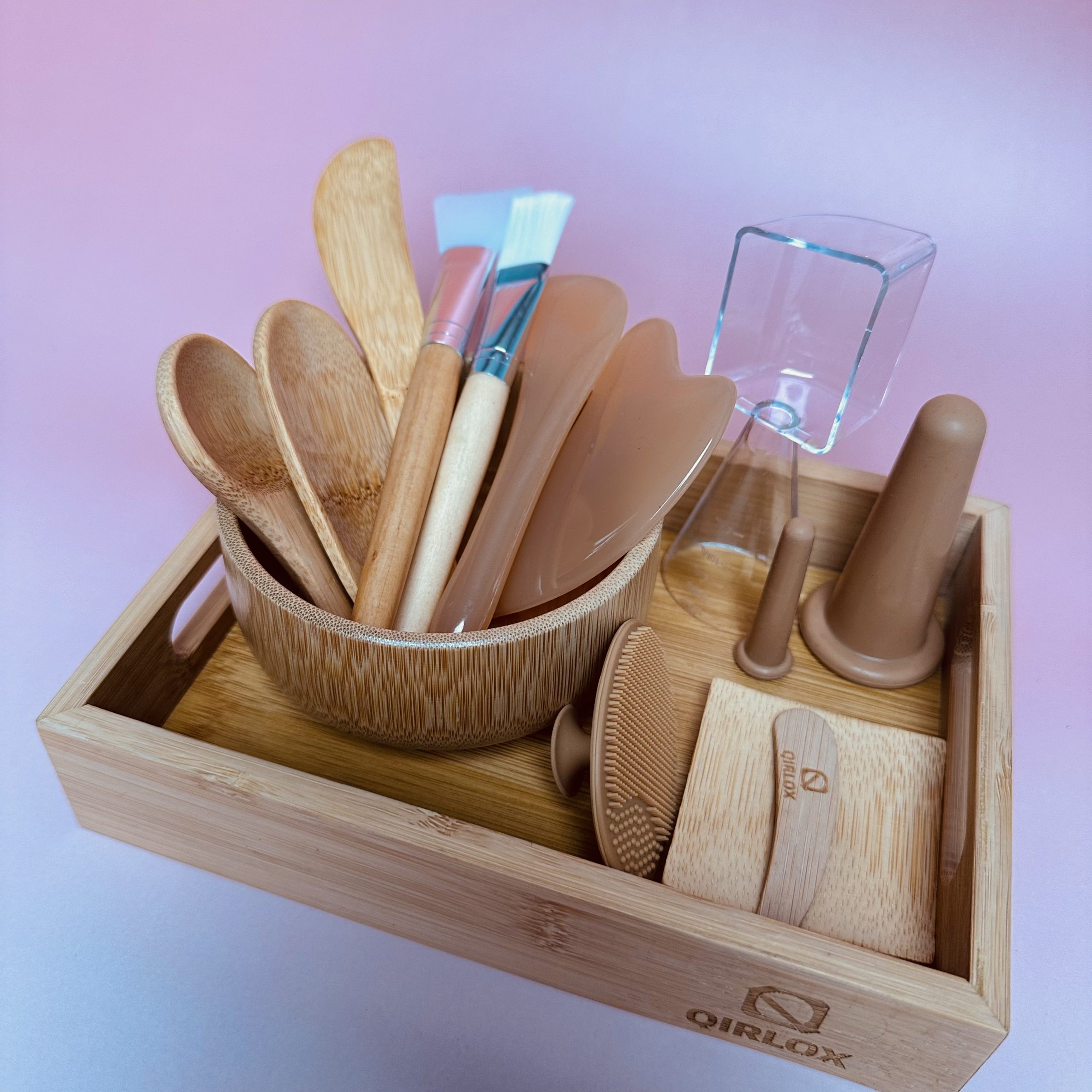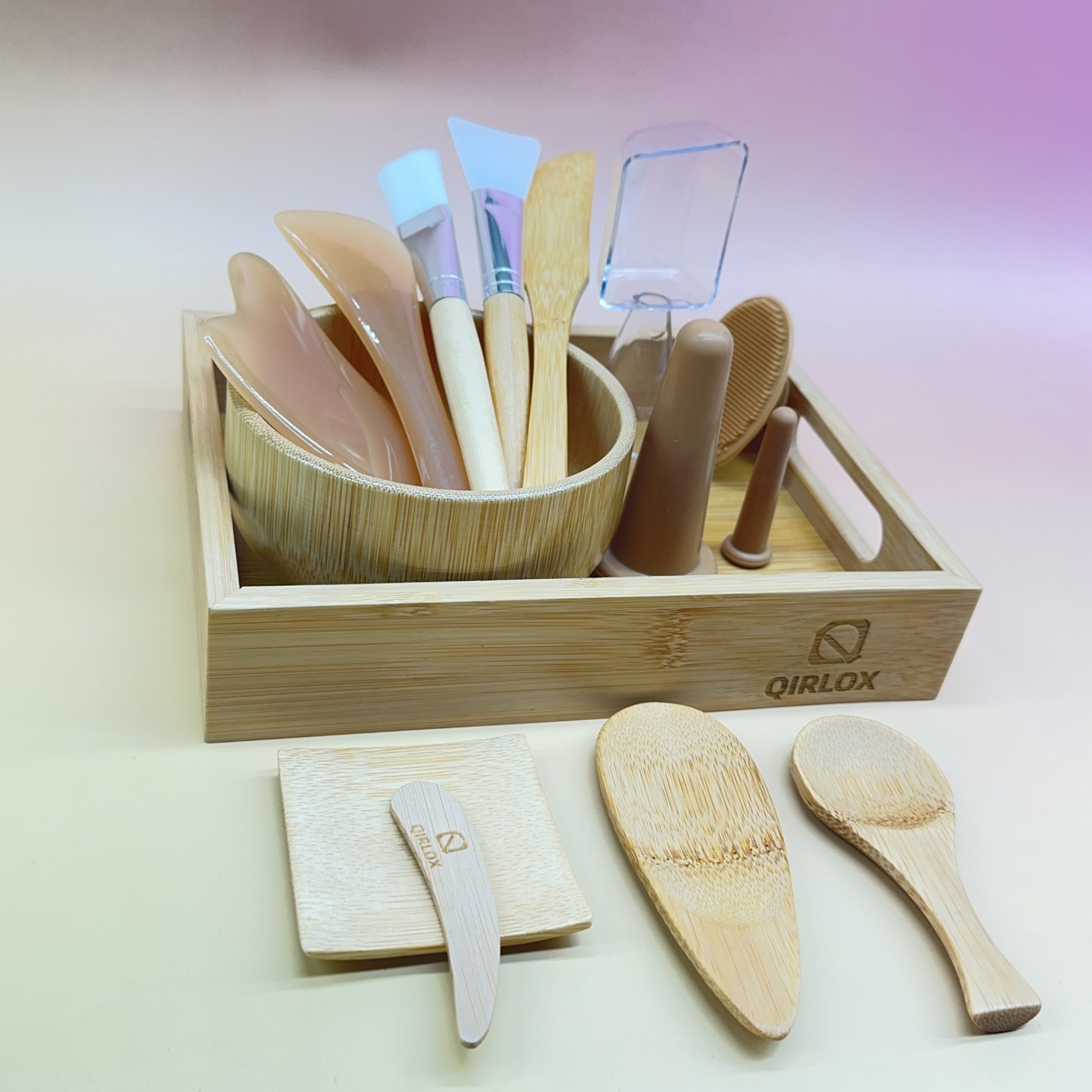 • Bamboo Tray & Mixing Bowl:Made of solid bamboo with a smooth, natural grain, it securely holds all your tools and prevents spills while mixing masks.